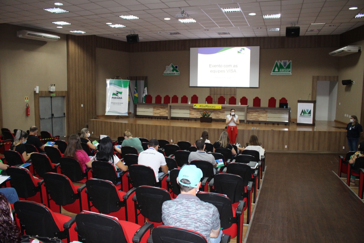 Equipes das Vigilâncias Sanitárias dos municípios participam, nesta terça e quarta-feira (22 e 23), de uma capacitação oferecida pela 8ª Regional de Saúde, no auditório da Associação dos Municípios do Sudoeste do Paraná (Amsop), em Francisco Beltrão.