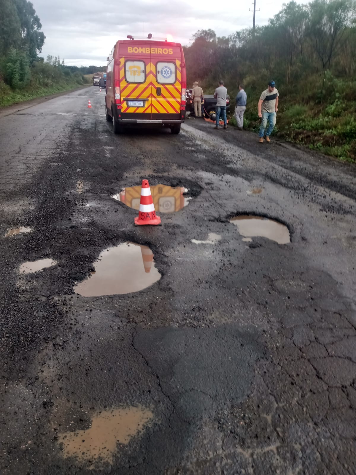 O motorista da Hilux, Ederson Trentin, de 35 anos, ficou ferido e foi encaminhado para atendimento médico.