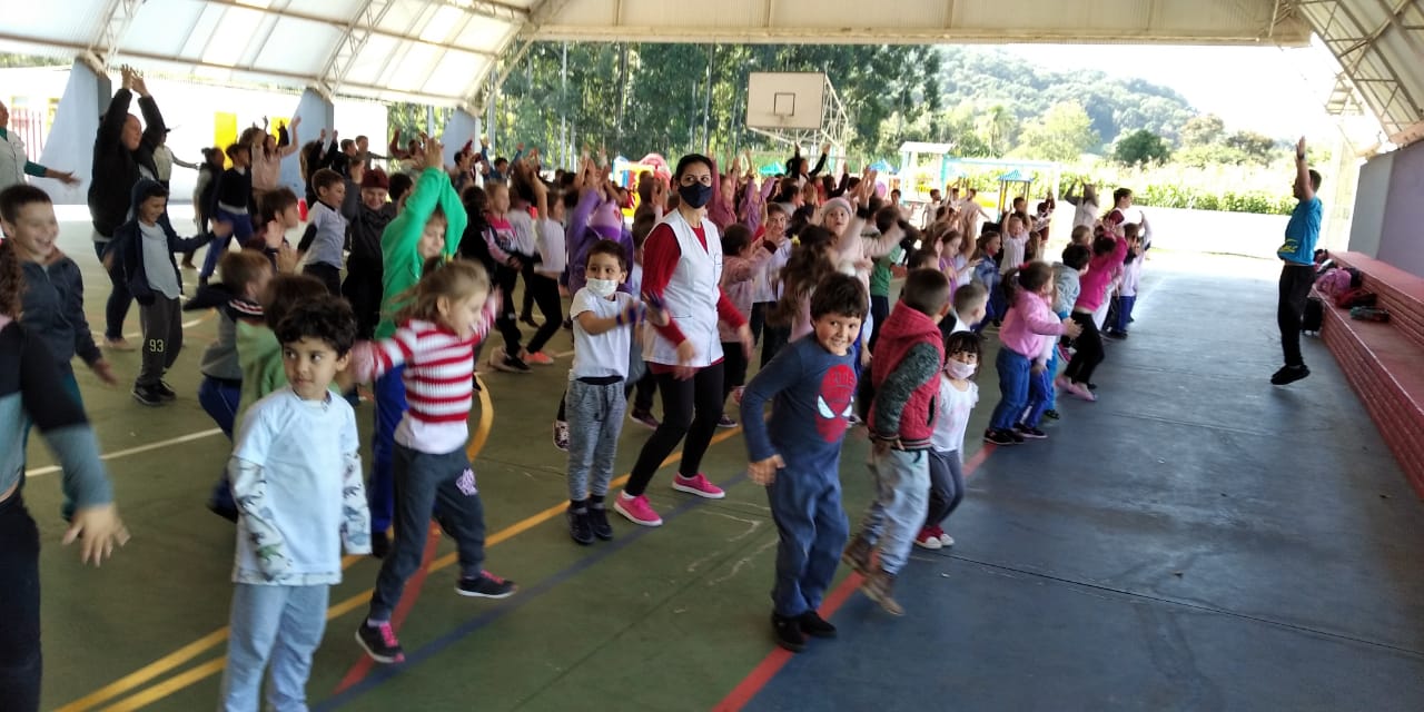 O Departamento de Educação desenvolveu atividades físicas com professores, servidores e alunos das Escolas Municipais e CMEI - Sementes de Esperança.