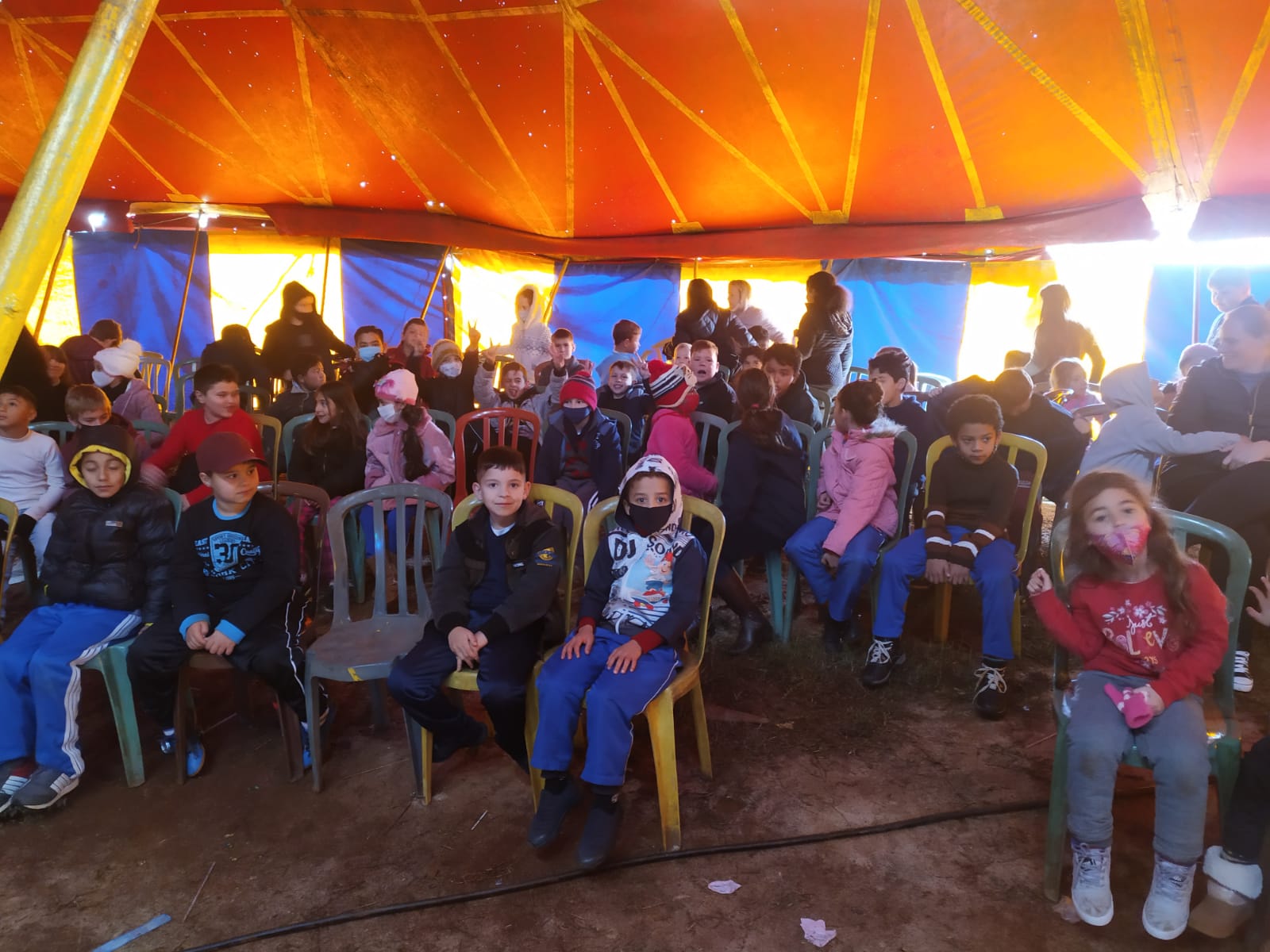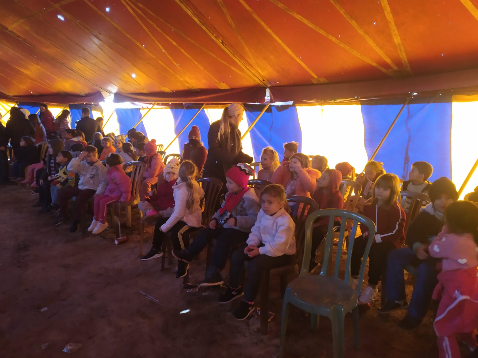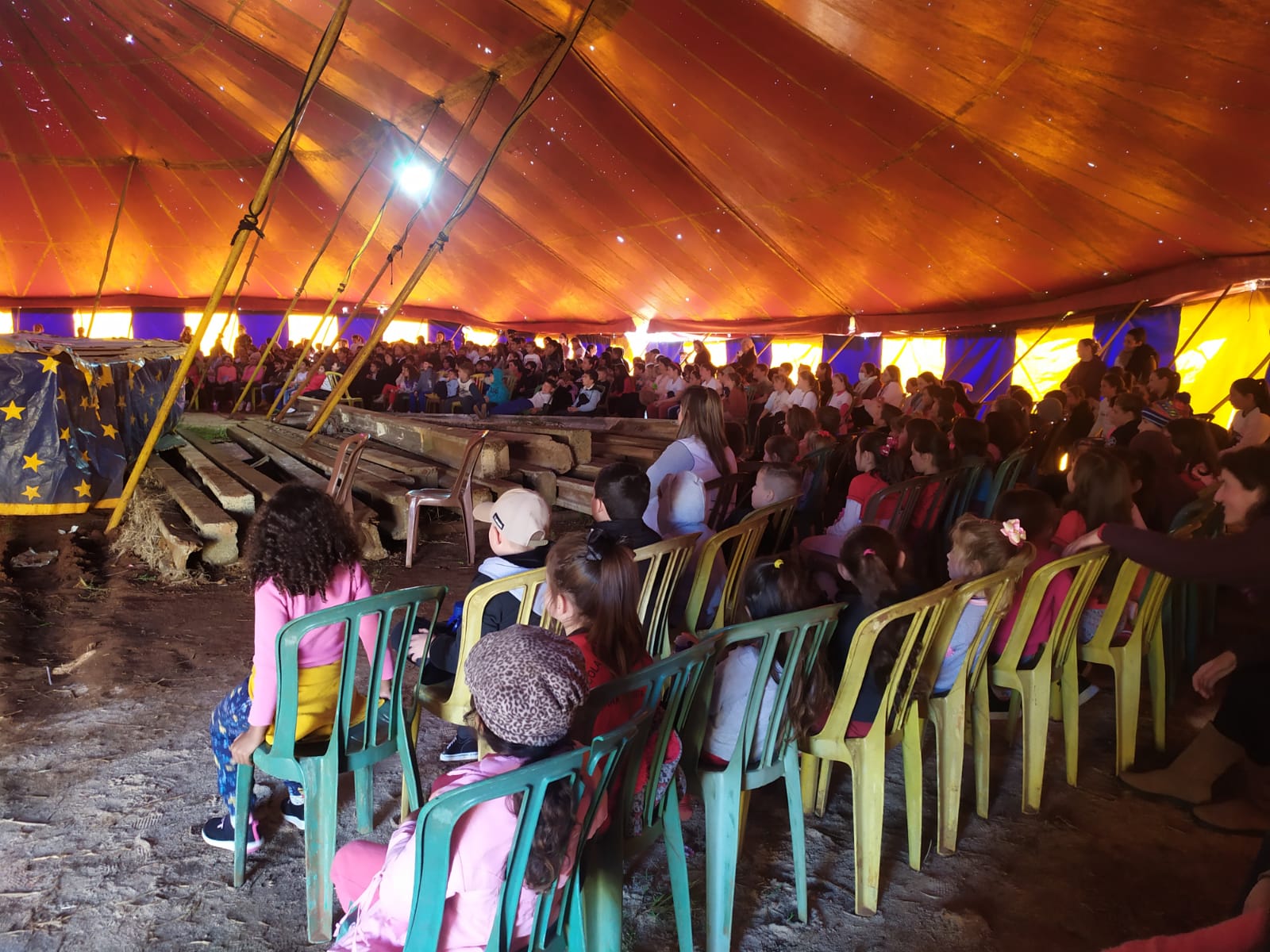 Alunos das escolas Visconde de Mauá, Angastão Cruz, Santo Antônio, da Associação de Pais e Amigos dos Excepcionais (APAE) e do CMEI Semente de Esperança foram levados para acompanhar apresentações do Circo que se encontra no município.