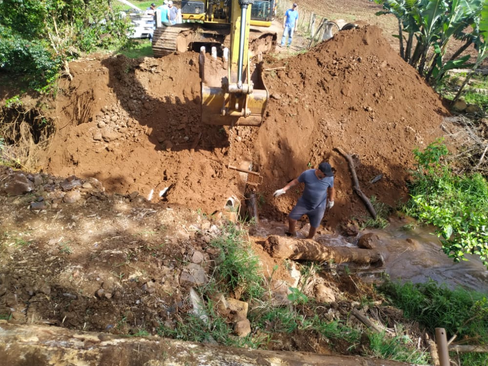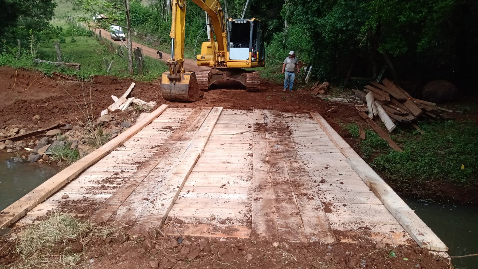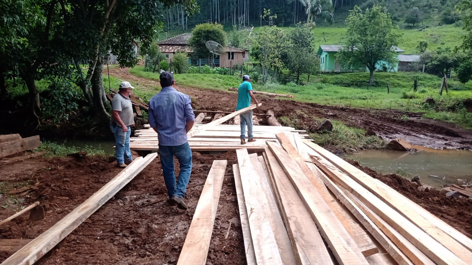 Nesta segunda-feira, o trabalho foi intenso para a recuperação da ponte na Comunidade de Barra Bonita, no acesso à propriedade de Luiz Rodolfo da Silva.