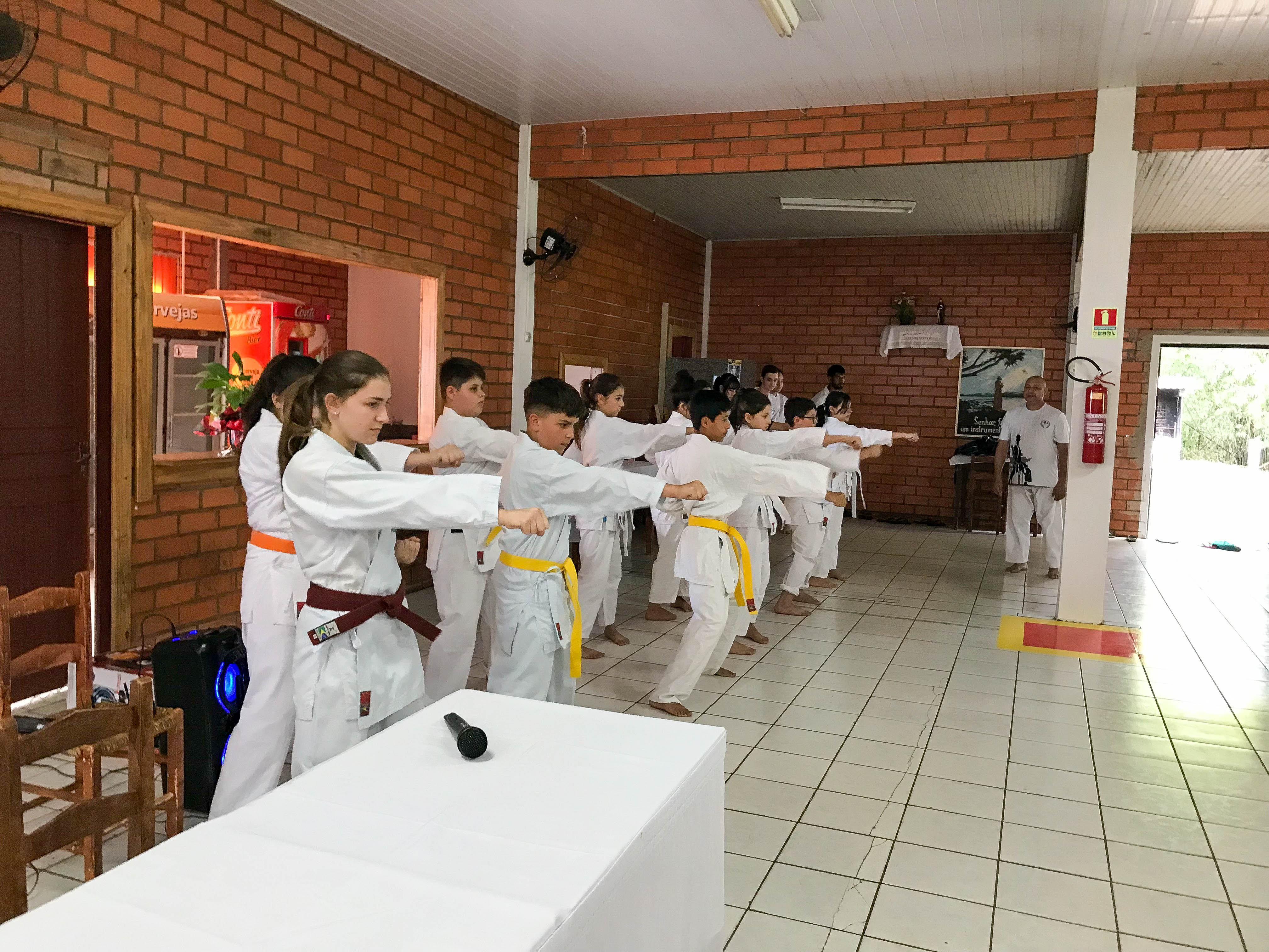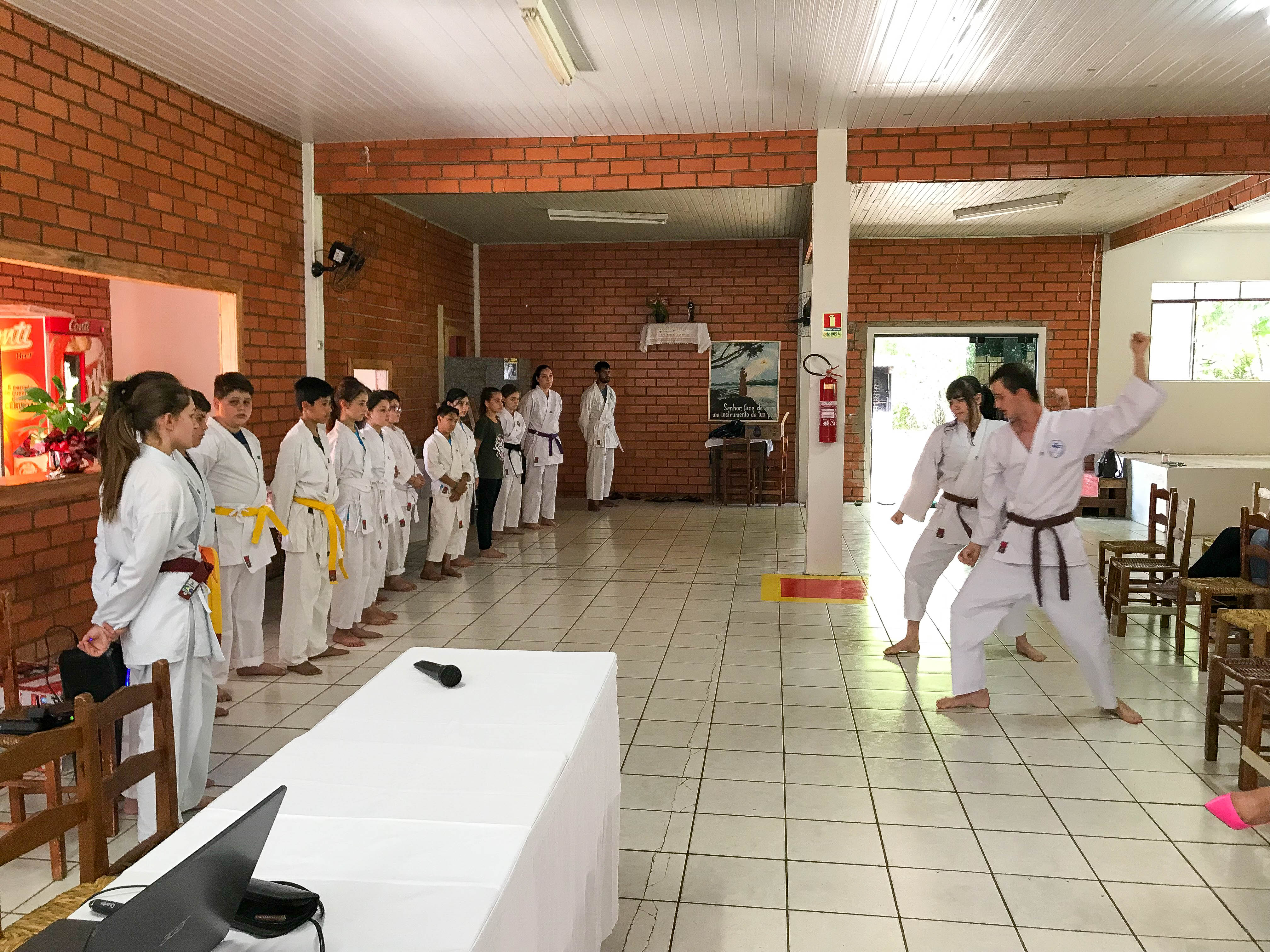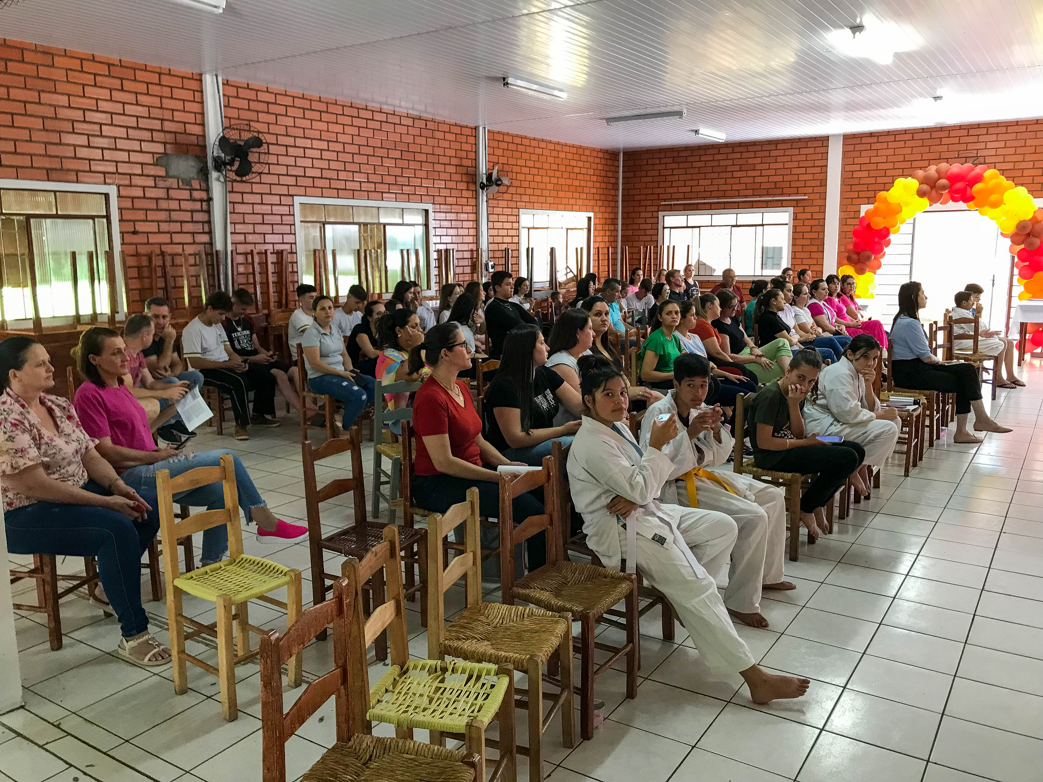 Na oportunidade alunos da oficina de Karatê do serviço de convivência e fortalecimento de vínculos do CRAS, estiveram realizando apresentações. Jacinta Imig também esteve palestrando.