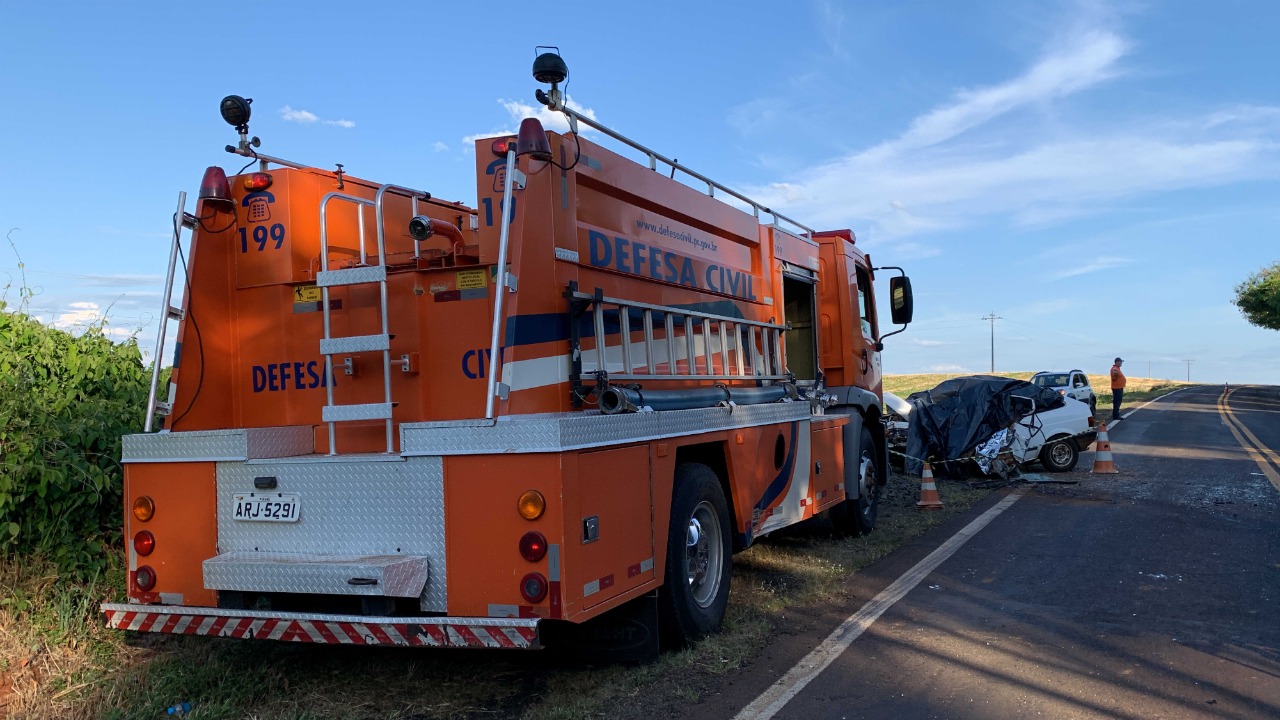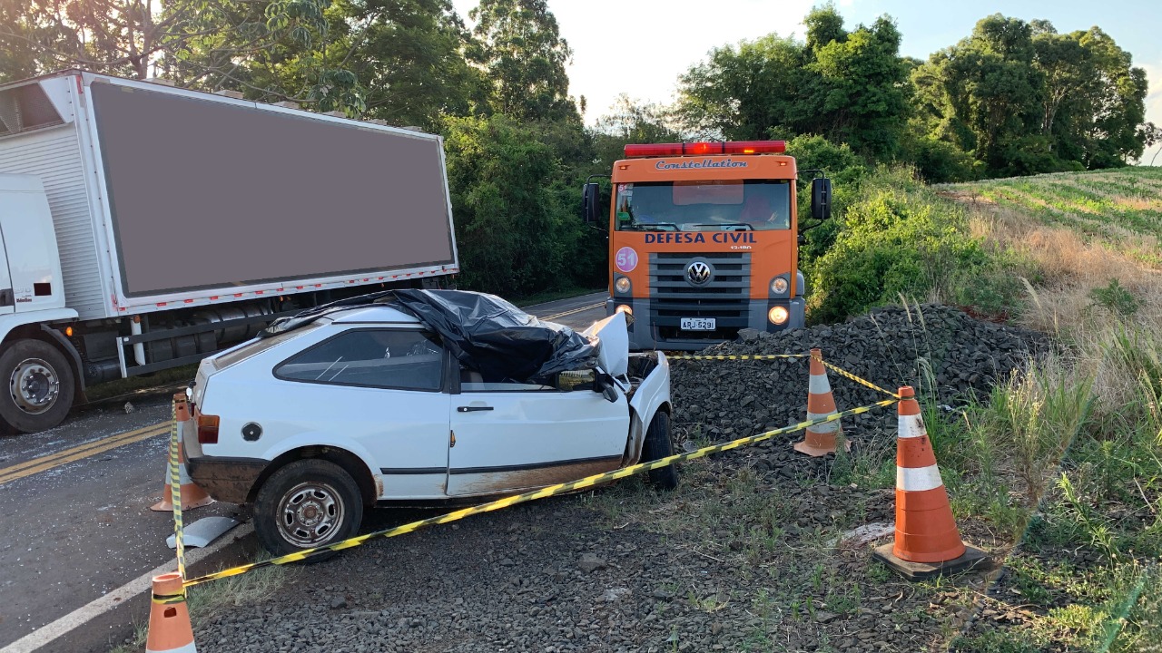 A colisão frontal envolveu um Gol com placas de Salto do Lontra e um caminhão Volvo 270 de Dois Vizinhos.