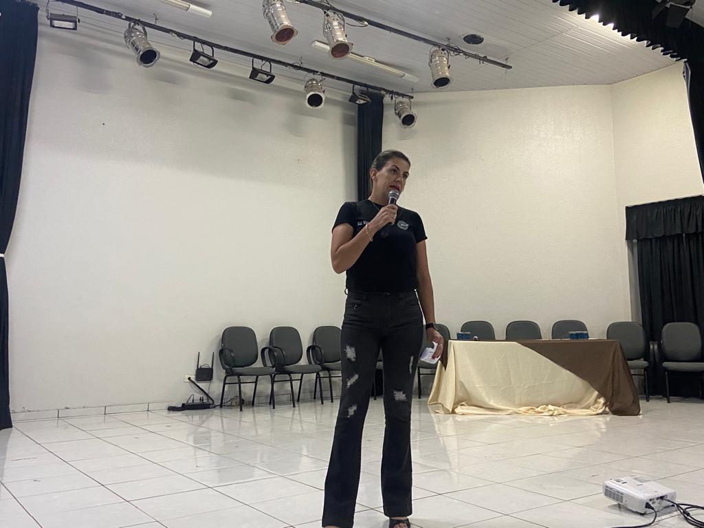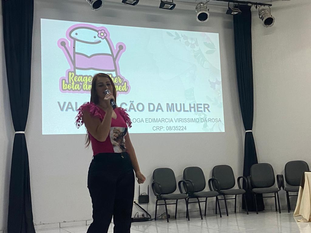 Inicialmente houve pronunciamentos de autoridades e em seguida palestras com a Psicóloga Edimarcia Virissimo da Rosa – Coordenadora da Comissão Municipal da Rede de Proteção e Presidente do Conselho Municipal dos Direitos da Criança e Adolescente (CMDCA), a Soldado da Polícia Militar, Vanessa Garcia e a Delegada da Polícia Civil, Thais Regina Zanatta (da cidade de Cascavel), todas abordando principalmente questões relacionadas a violência contra mulher, especialmente com orientações sobre a Lei Maria da Penha e como denunciar.