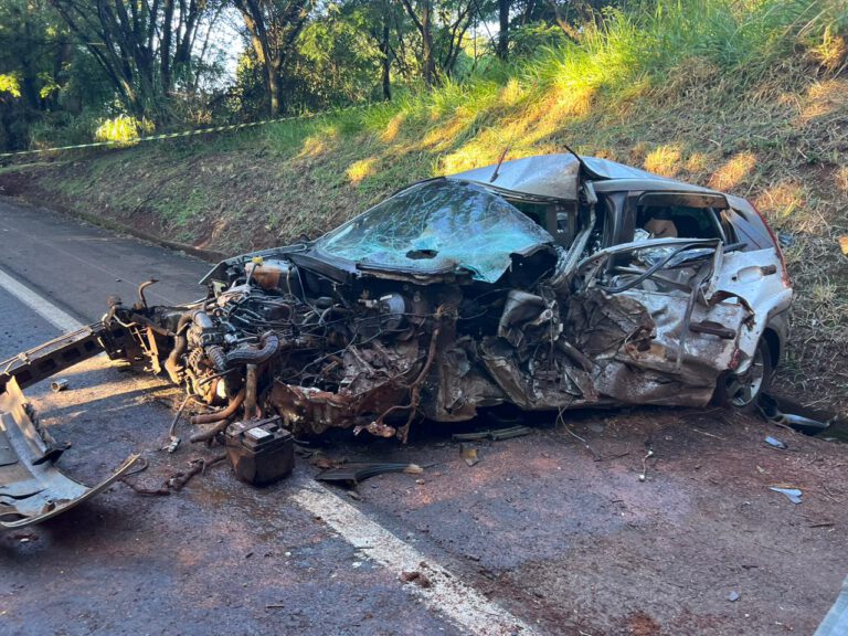 O acidente envolveu uma carreta carregada com farelo e um Fiesta, emplacado em Bela Vista da Caroba. A colisão ocorreu no trecho entre as comunidades São Salvador e Linha Sagioratto.