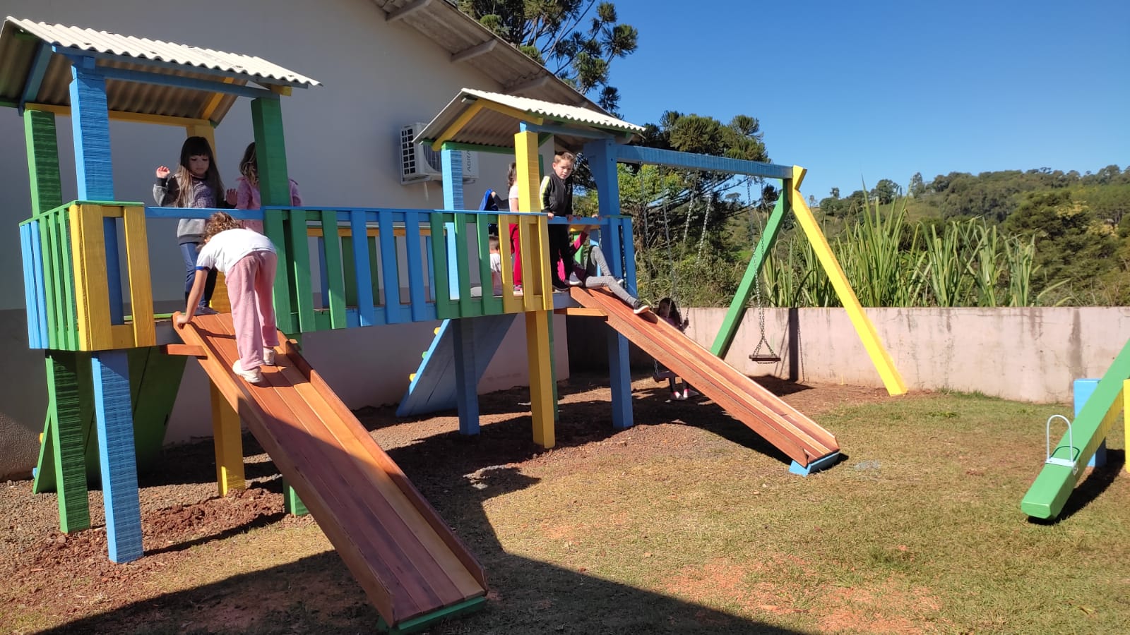 Os alunos da Escola Rural Municipal Angastão Cruz Educação Infantil e Ensino Fundamental da Comunidade do Rio Gavião, Nova Esperança do Sudoeste, foram contemplados recentemente com um playground (parquinho). O espaço passa a contar com quatro gangorras, três balanços, dois escorregadores, duas escaladas com passarela e duas casinhas cobertas.