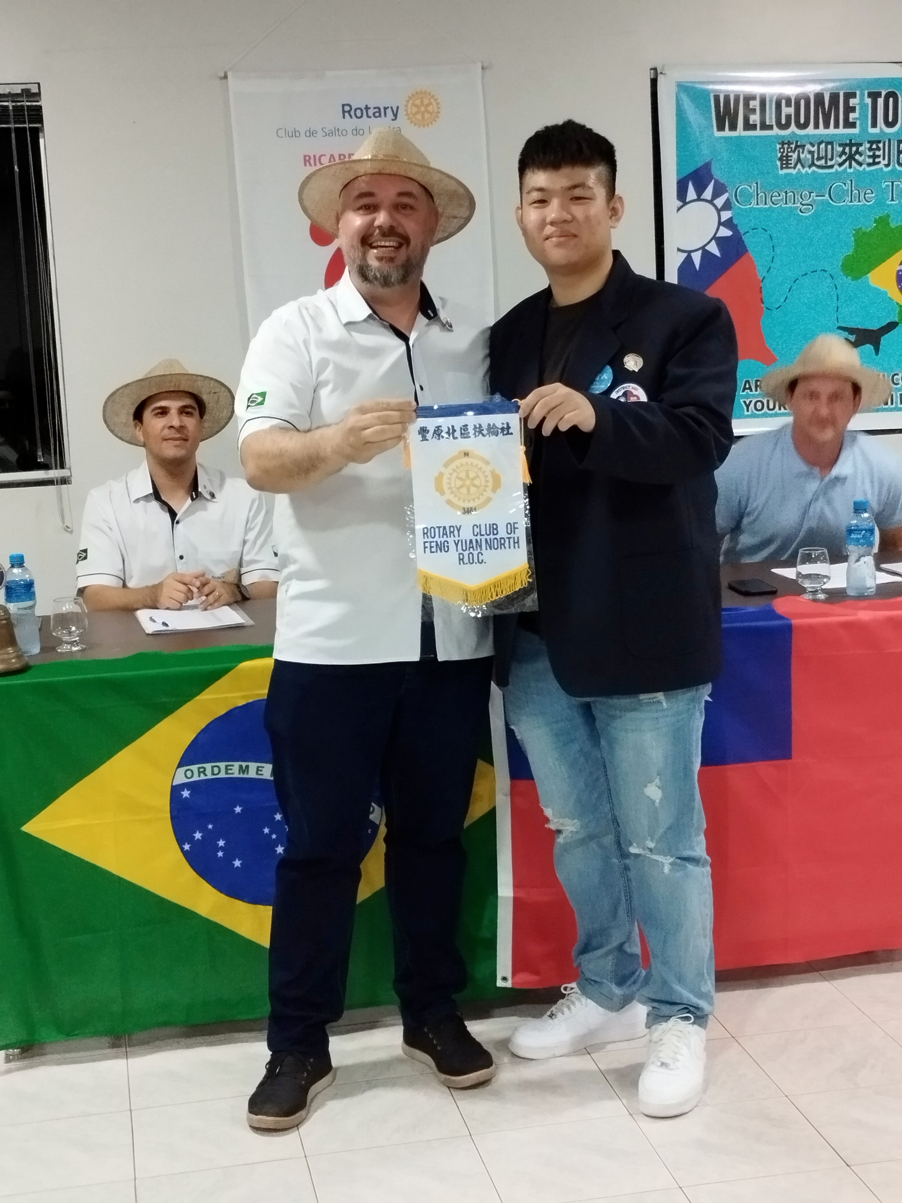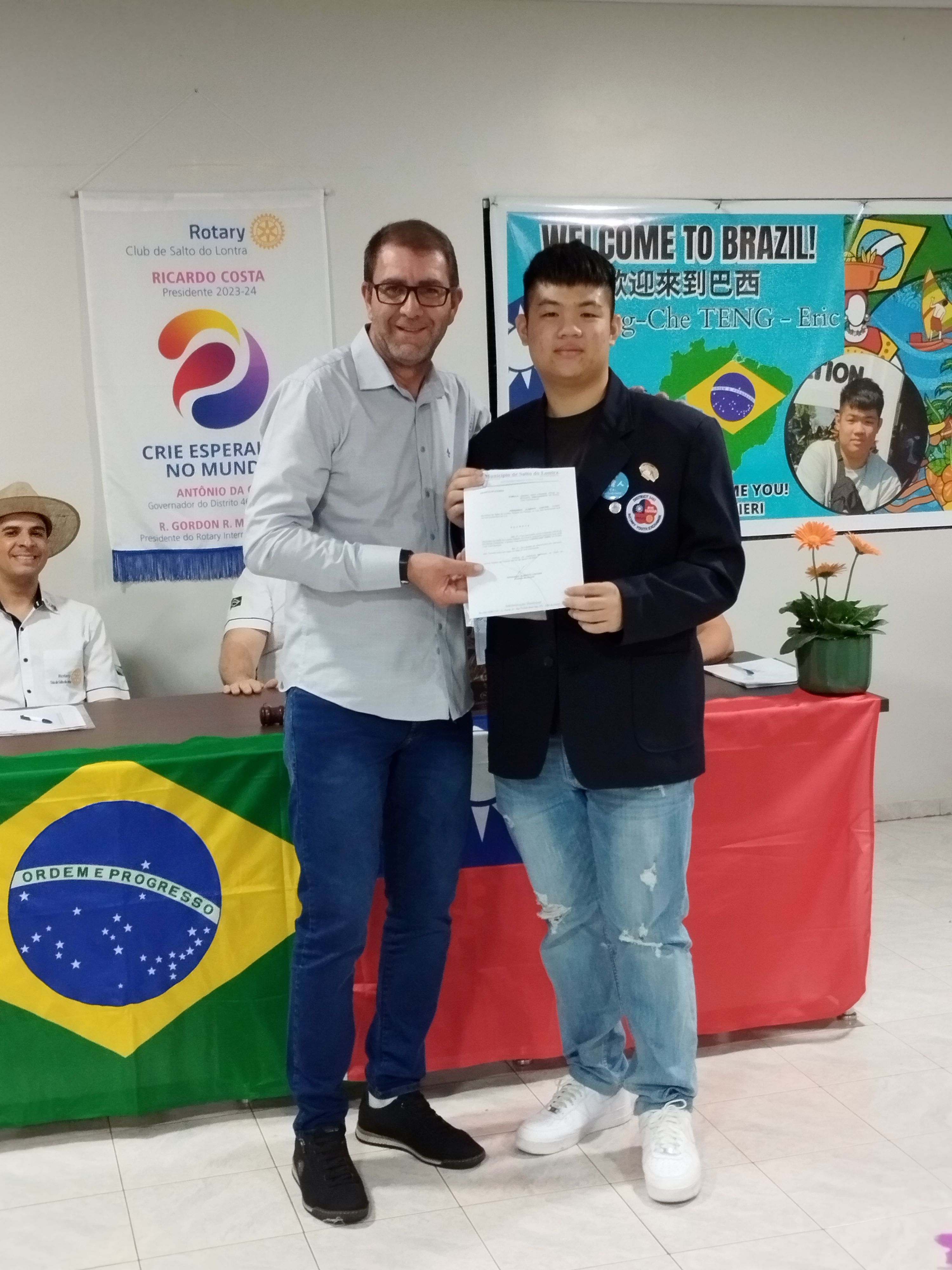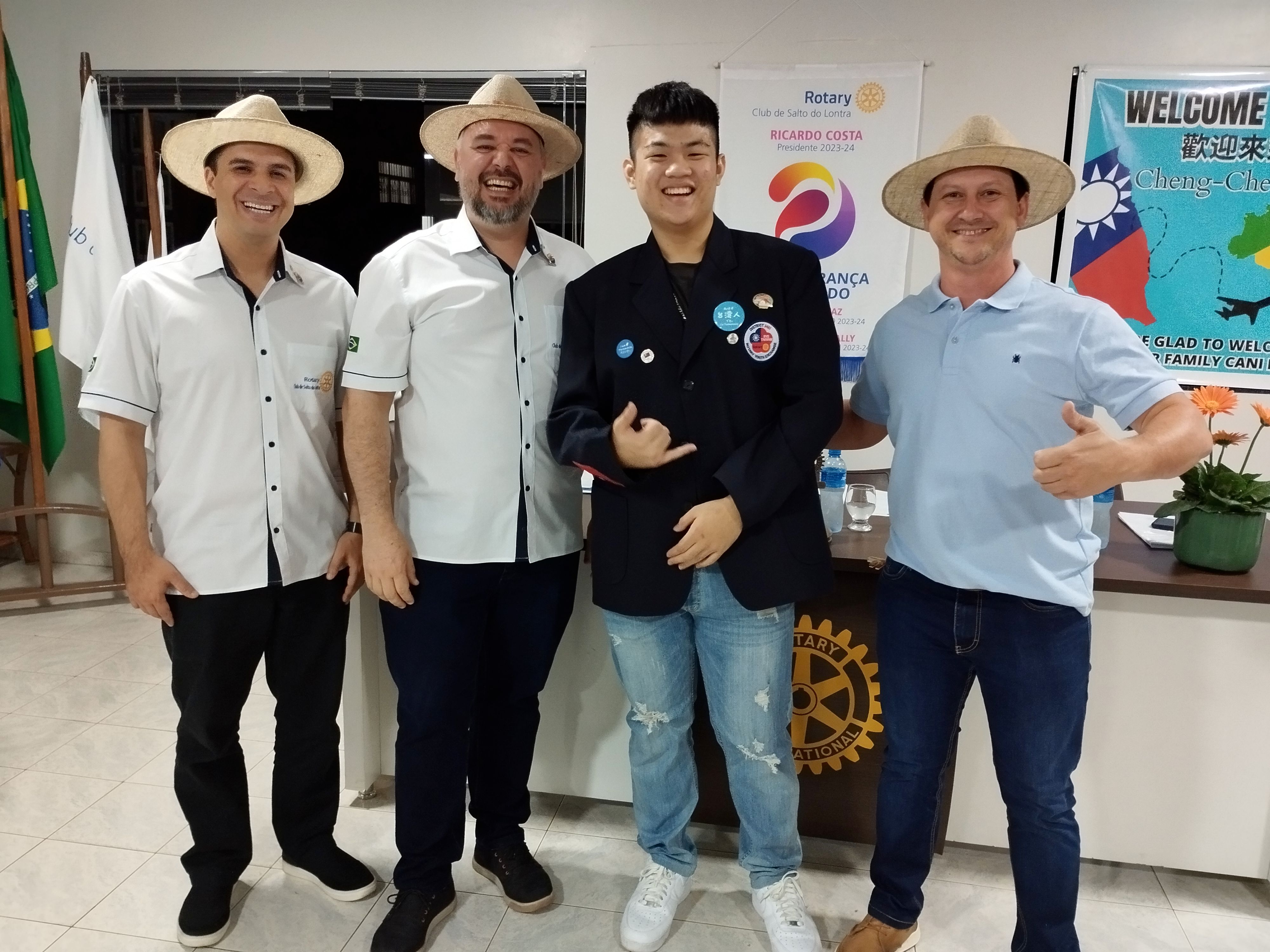 Na noite da última sexta-feira, 25 de agosto, o Rotary Club de Salto do Lontra deu as boas vindas ao jovem de Taiwan Cheng Che Teng, que optou por ser chamado de Eric, de 17 anos. Ele vem ao Brasil por intercâmbio do Rotary Internacional, com o objetivo de aprender a língua portuguesa e a nossa cultura.