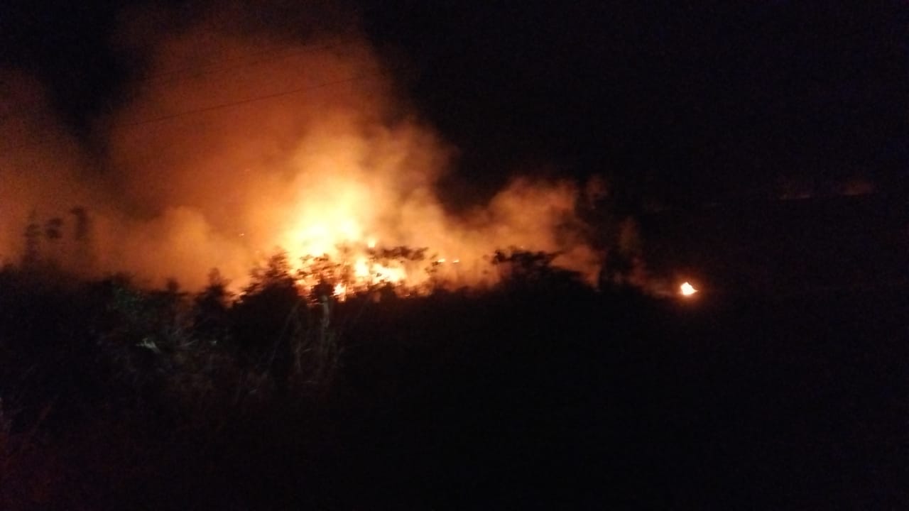 No início da noite de sexta-feira (2) foi registrado incêndio em vegetação na Linha Santa Rita, interior de Salto do Lontra, próximo à PR-281.