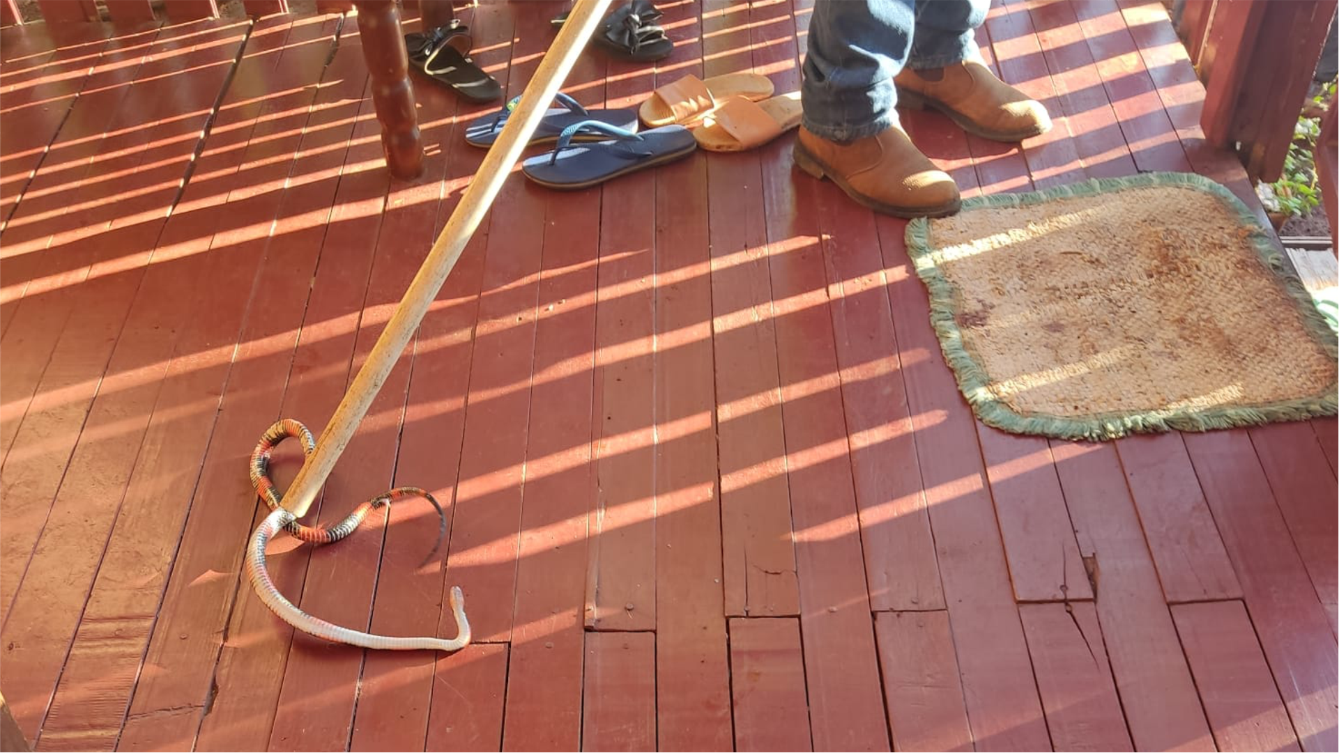 No endereço indicado, a equipe localizou uma cobra, identificada como uma Coral.