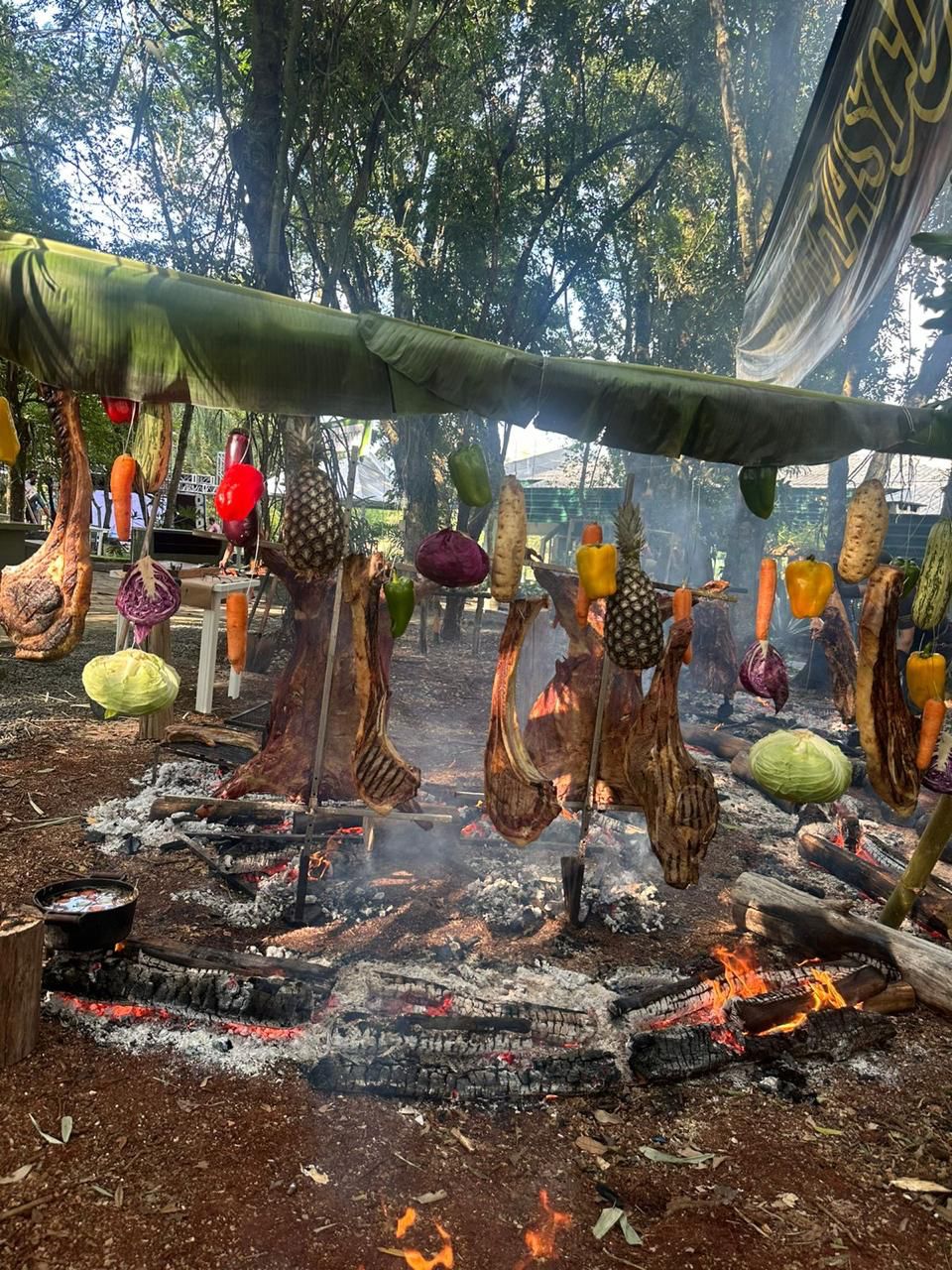 Um evento com todos os ingredientes de uma grande festa: churrasco ao fogo de chão preparado por uma equipe especializada e tendo diversos acompanhamentos, shows, ambiente aconchegante em um belo bosque e muita gente participando.