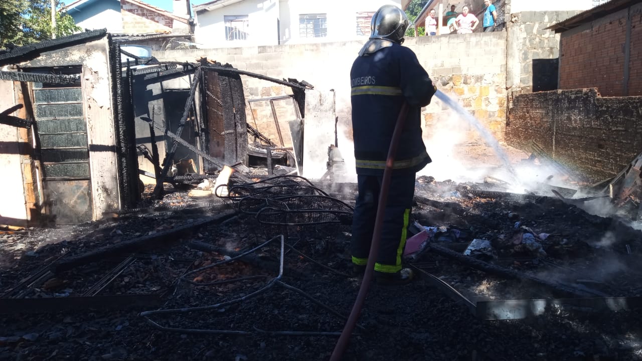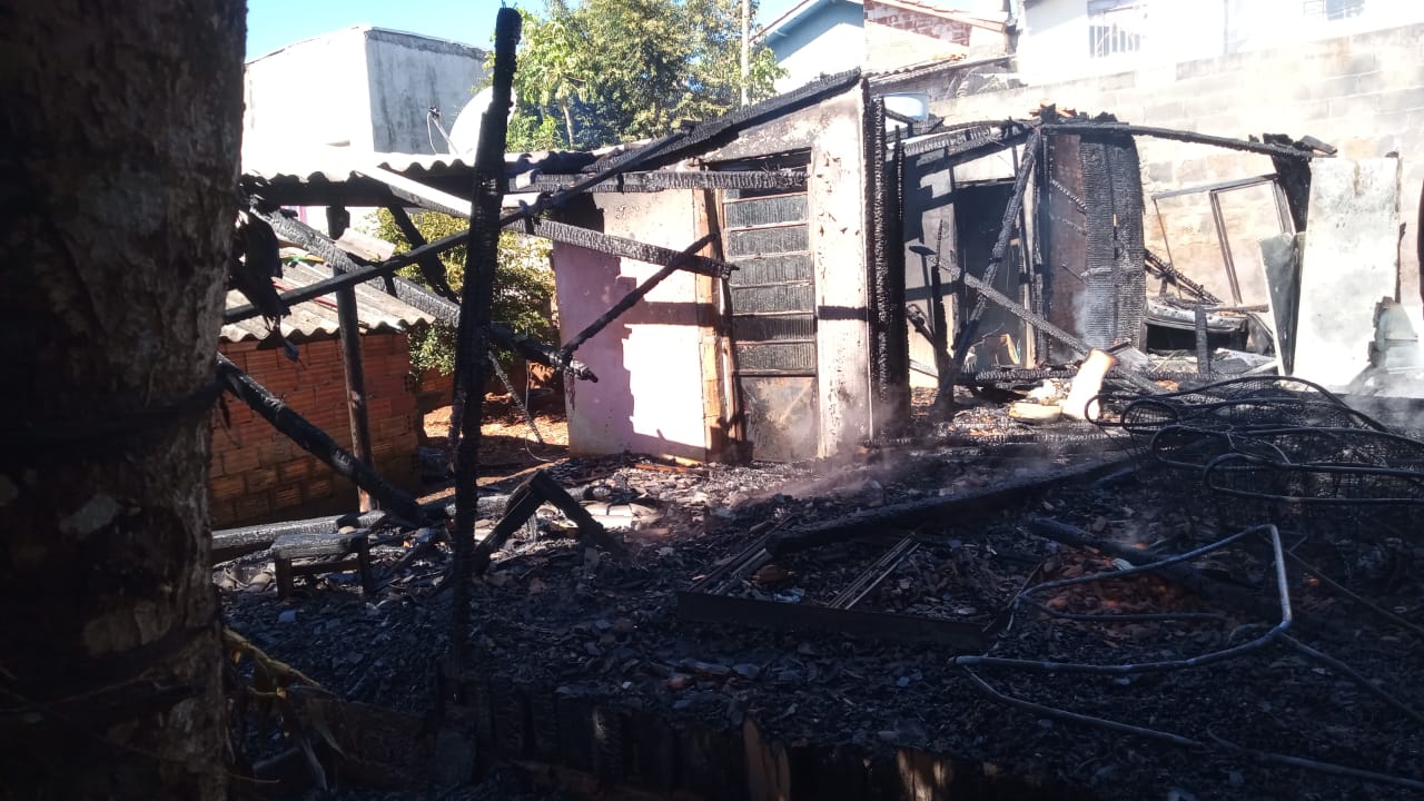 Uma casa de madeira de 60 metros quadrados foi completamente consumida pelo fogo.