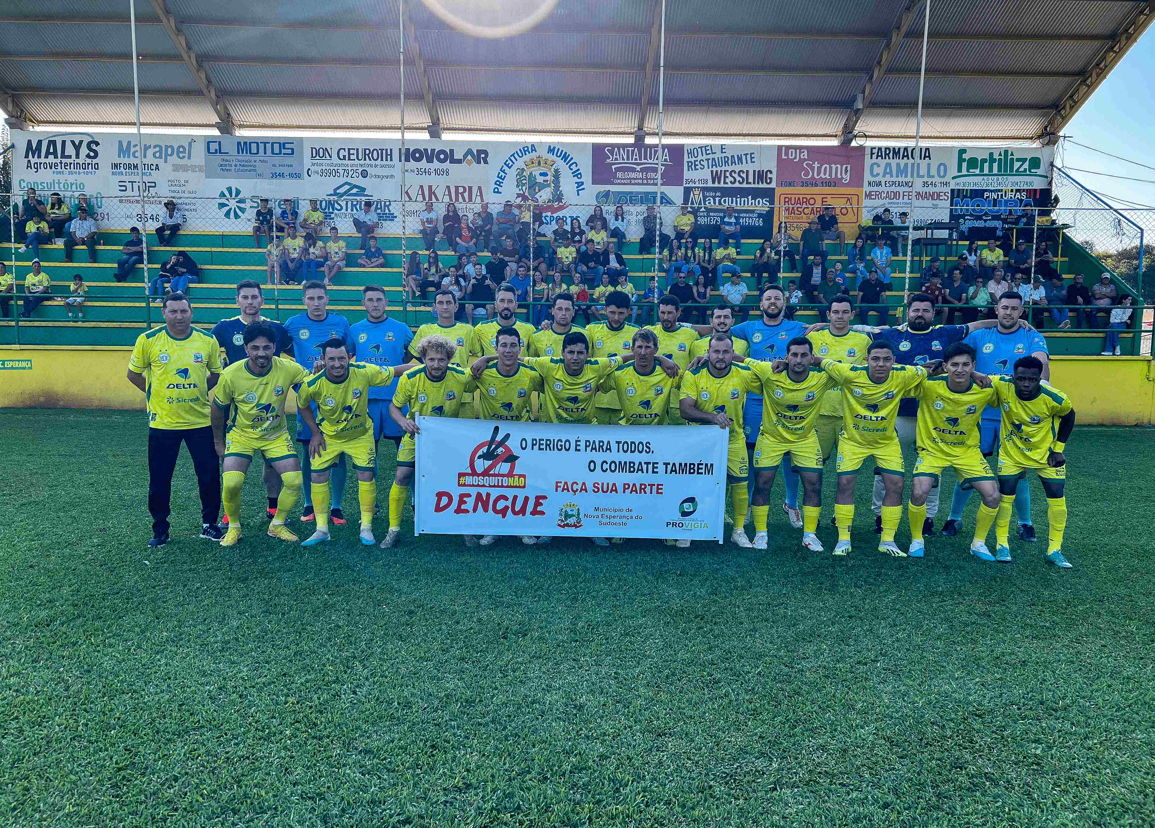 Na oportunidade o Esperança também entrou em campo com um faixa para alertar a população sobre os cuidados com Dengue. A ação foi promovida em parceria com o Departamento de Saúde de Nova Esperança do Sudoeste.