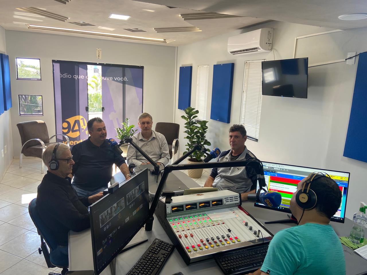 O Prefeito de Salto do Lontra, Fernando Cadore, o Diretor do Departamento Municipal de Esportes, Paulo Cesar Brustolin (Hércules) e o Gerente da Cooperativa Sicredi, Gilson Winkelmann estiveram nesta quarta-feira, 03, participando do Programa Resenha Esportiva na Rádio Independência FM para lançar oficialmente a 2ª Copa Sicredi Salto Futsal – o Campeonato Municipal de Futsal Masculino Força-Livre. Eles foram recebidos pelo apresentador Alisson de Souza e pelo comentarista esportivo da emissora, Moacir Pedro Koerig (Ciso).