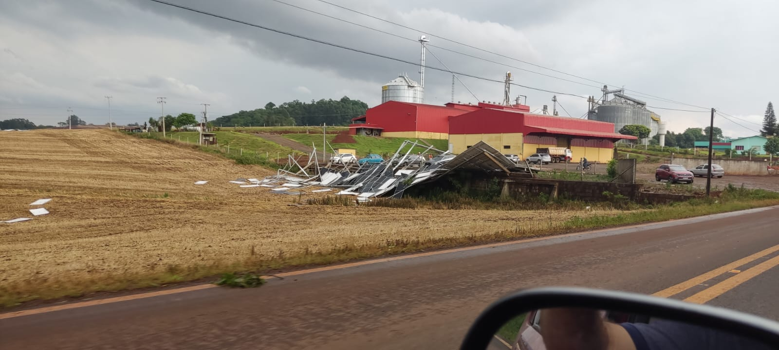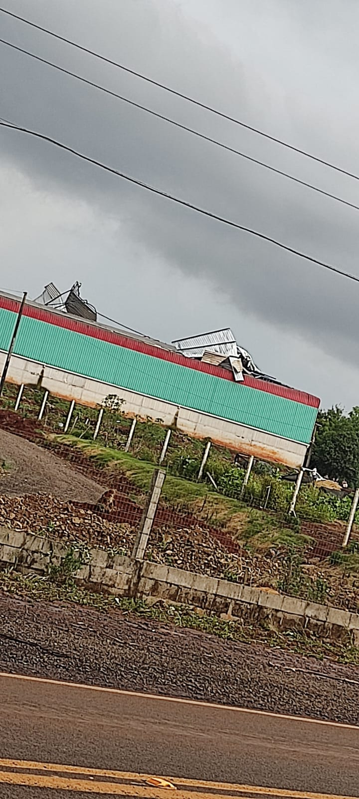 Em Medianeira, o centro de eventos da Cooperativa Lar também foi atingido por rajadas de vento que destruíram parte da entrada e derrubaram uma placa, além de atingirem maquinários da empresa.