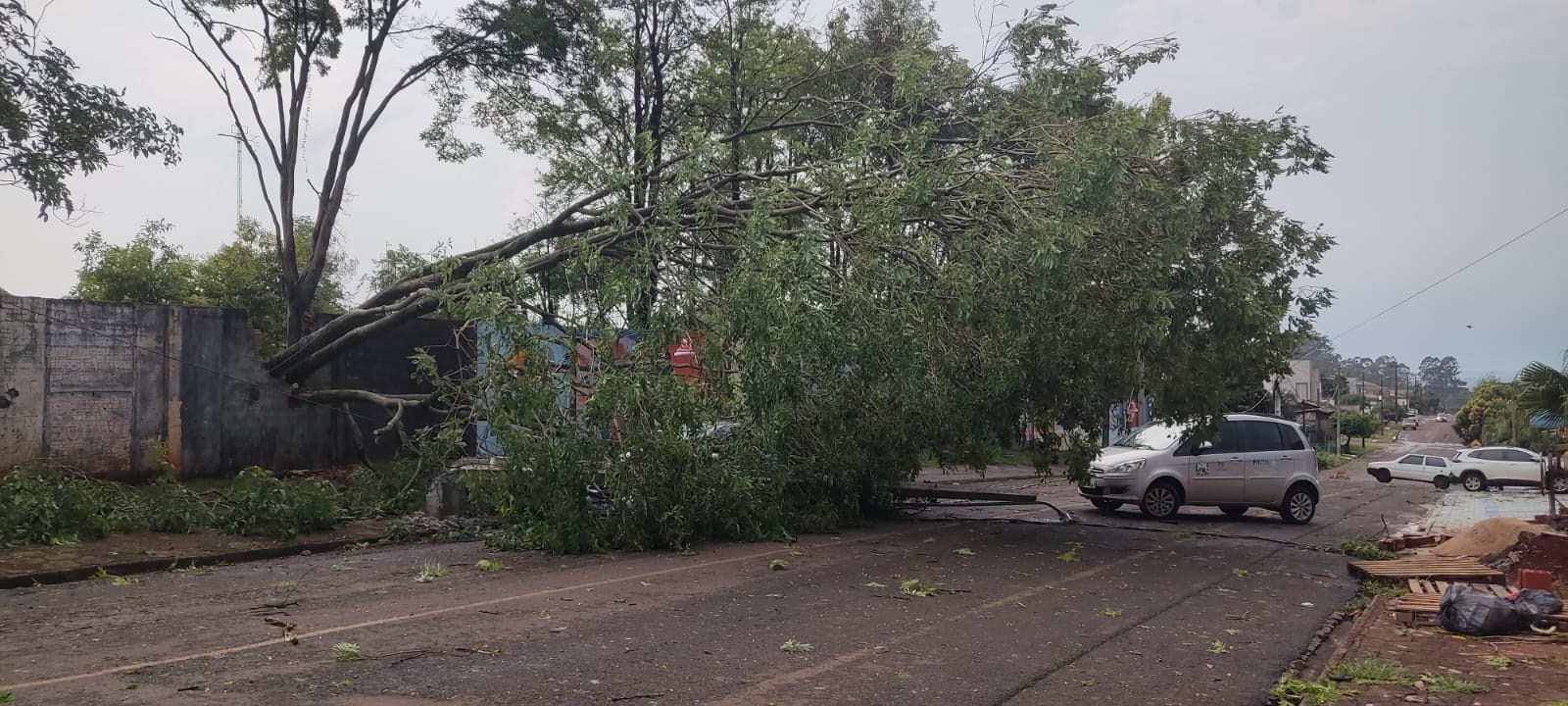 Em Nova Prata do Iguaçu e Realeza, foram registradas diversas ocorrências de quedas de arvores e destelhamentos.