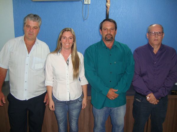 Foto 2: Nova Mesa Executiva da Câmara Municipal de Salto do Lontra para o biênio 2015/2016: João Carlos Dalberto (2º Secretário), Sandra Ribeiro (Vice-Presidente), Ladair Casanova Cavilha Sócrates (Presidente) e Marcos Koerig (1º Secretário).