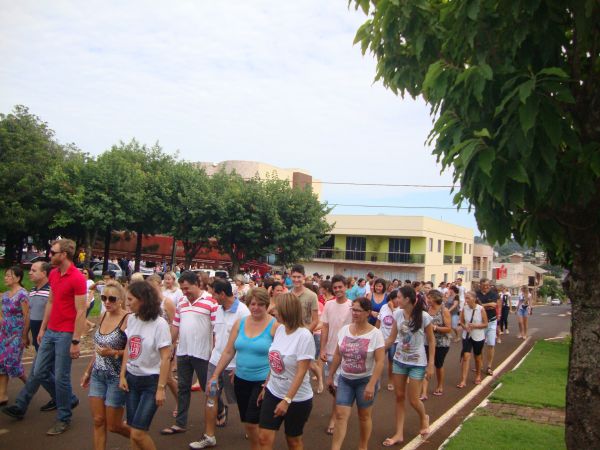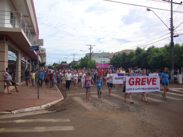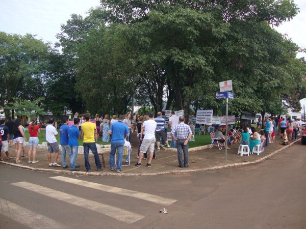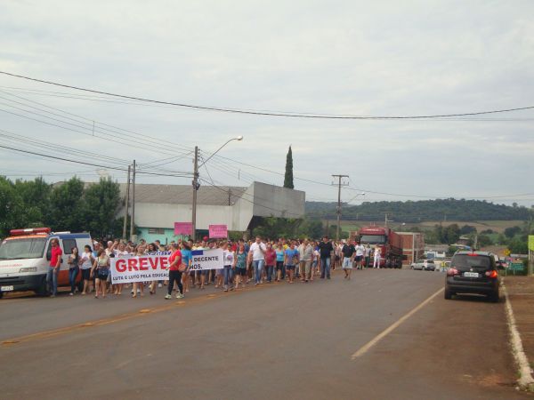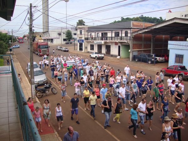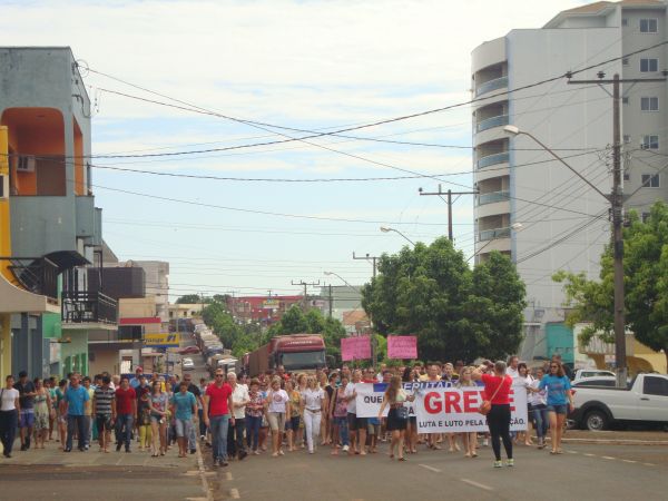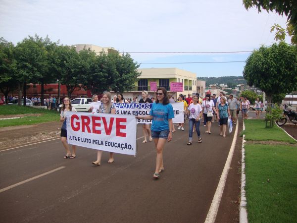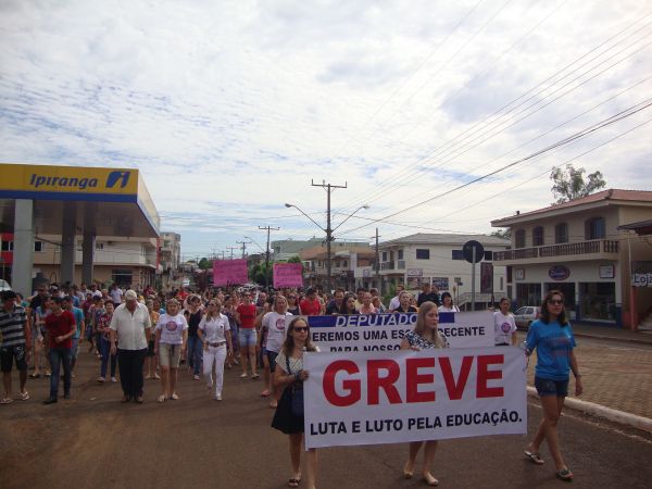 Logo cedo houve concentração na Praça Central e em seguida ato público pelas Avenidas Nicolau Inácio e Bertino Warmling. A frente professores e comerciantes caminhavam com faixas e atrás seguiam os caminhões.