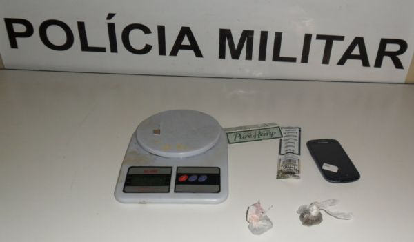 Ainda em Realeza, na Rua Projetada A, Bairro João Paulo, foi cumprido outro mandado judicial. Ao chegar à residência, a proprietária não franqueou a entrada da PM, sendo necessário arrombar a porta. No interior, foram encontradas duas buchas de maconha envoltas em plástico, pesando novegramas. Foi localizado também uma balança de precisão, papéis seda, além de um telefone celular Samsung e dois chips avulsos. No interior da casase encontrava um jovem de 27 anos que assumiu ser o proprietário dos objetos. Diante disso, foi encaminhado o suspeito, juntamente com os objetos, até a Delegacia de Polícia Civil.