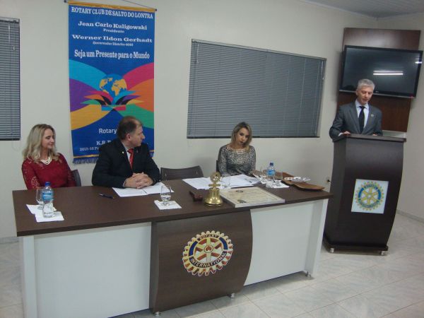 O Rotary Club de Salto do Lontra realizou na noite desta quinta-feira, 02, a posse da nova diretoria para o biênio 2015/2016 cujo lema será: Seja um Presente para o Mundo. Roquelane Spigosso passou a presidência para Jean Carlo Kuligowski.