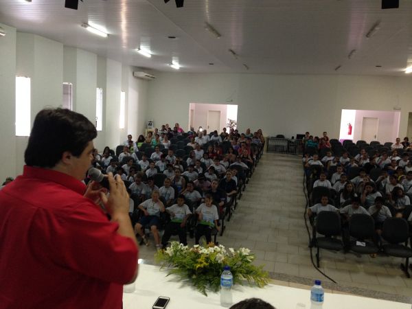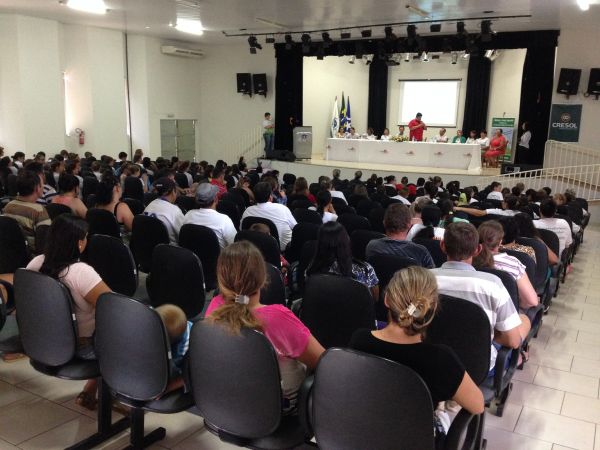Legenda: Mais de 100 alunos receberam os certificados de formação do Programa Um Olhar Para o Futuro. Em seu discurso o Prefeito Maurício Baú enalteceu a parceria do Município com a Cooperativa Cresol neste e em outros projetos.