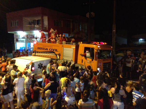 O pátio da Igreja Matriz Nossa Senhora Aparecida ficou tomado na noite desta terça-feira, 08, para a abertura do Natal em Salto do Lontra. Um grande público prestigiou a encenação feita pela Caravana do Natal Encantado do Provopar Estadual. Em seguida houve pronunciamentos de autoridades e a chegada dos Papais Noéis que vieram no Caminhão da Defesa Civil (Bombeiro Comunitário). Eles entregaram presentes trazidos pelo Provopar para crianças de famílias carentes que tinham retirado senhas antecipadamente na Secretaria de Assistência Social e no Centro de Referência em Assistência Social (CRAS). A garotada também ganhou doces do Bom Velhinho.