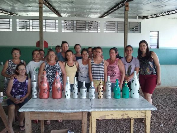 Foto 02 - Clube de Mães da comunidade de Barra do Lontra participa de curso de artesanato com decoração em garrafas.