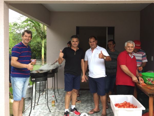 Foto 2: Prefeito Jair Stange e Vice-Prefeito Valdir Vitoretti juntamente com secretários e servidores municipais prepararam o almoço em comemoração ao Dia Internacional da Mulher.