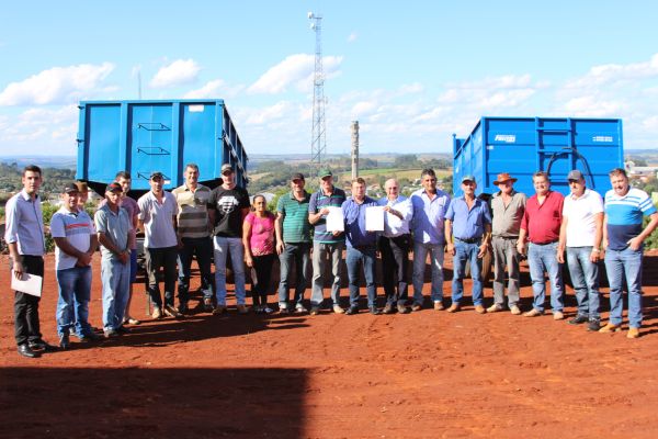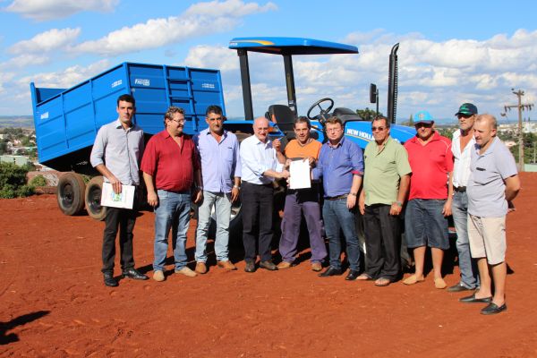 vereador Vanderlei Orben e seu grupo político. A entrega de um trator, um pulverizador e três