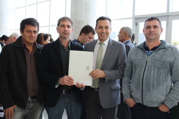 vice-prefeito de Salgado Filho, Astério Marchetti e vereadores Betinho Rech e Doelio da Silva Rosa em evento no Palácio Iguaçu; Na ocasião, o deputado também esteve com o prefeito de Pranchita, Eloir
