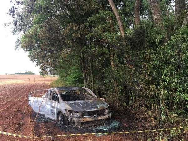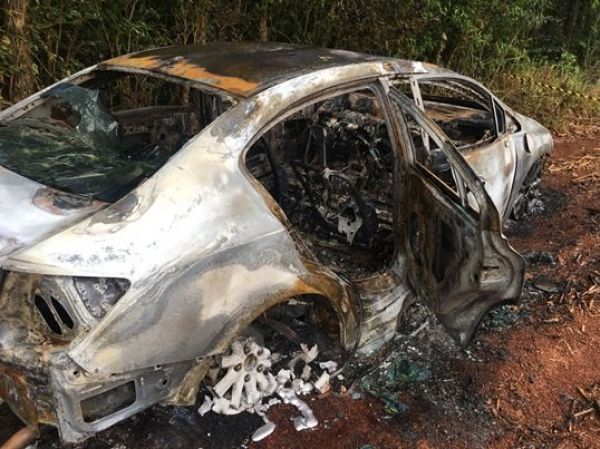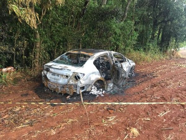 queimado com um corpo carbonizado no banco de trás. Os documentos e a bolsa da vítima foram jogados
