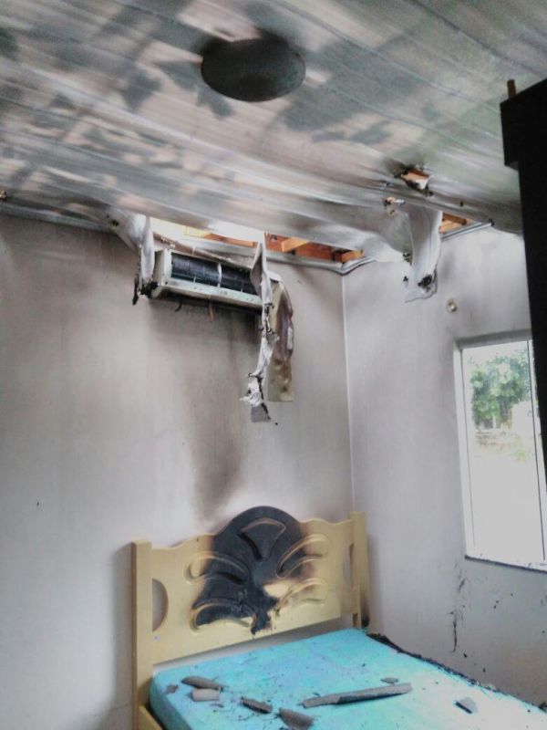 destruiu parte da cobertura da residência, aparelhos eletrônicos e móveis. Ninguém se feriu.