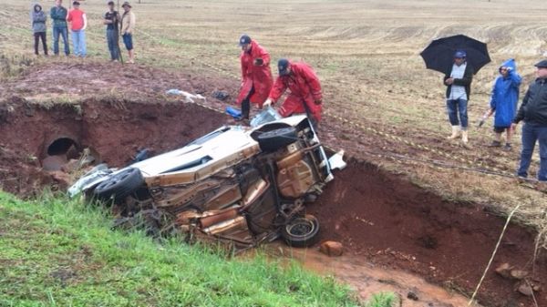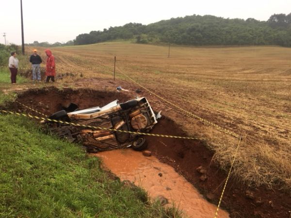 caminhão que passava pelo local. O Astra estava capotado e dentro de uma vala as margens da