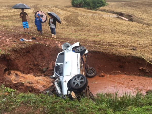 Estado. O fato ocorreu durante a madrugada, mas o carro, um Astra com placas de Ampére-PR, só foi