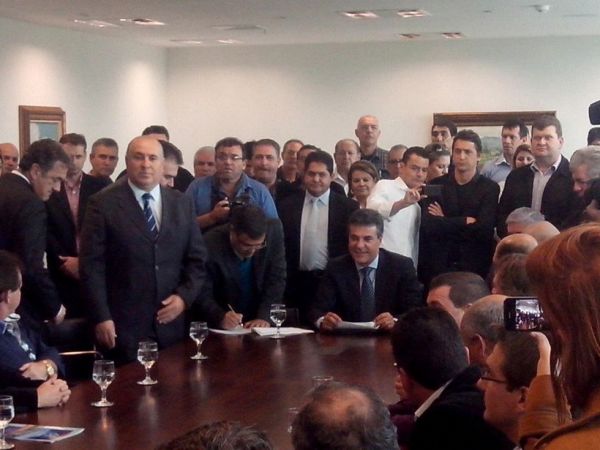 Assessoria - O prefeito em exercício de Ampére, Luiz Carlos Grzebieluckas, assinou nesta terça, 24, em Curitiba, o convênio para liberação de recurso no valor de R$ 120 mil para aquisição de um veículo para o transporte de pacientes. No evento, o governador Beto Richa recebeu prefeitos da região para a assinatura de convênios na área da saúde.
