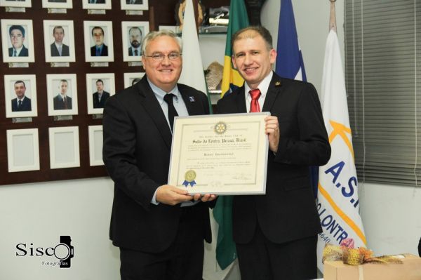 Na foto o ex-presidente do Rotary, Luiz Fasolin e o novo presidente Roquelane Spigosso.