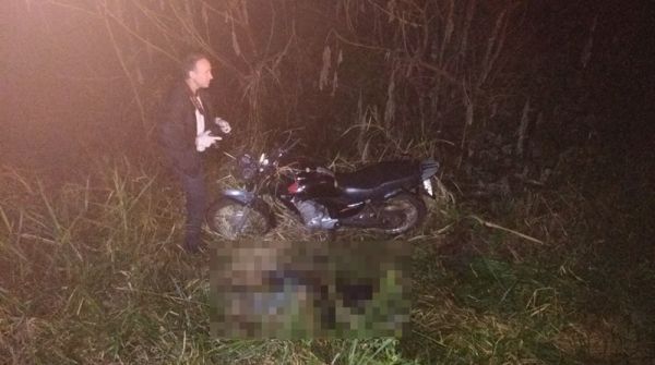 A moto saiu da pista e tombou na margem da rodovia. Vilmar bateu com a cabeça em