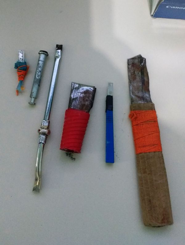 pontiagudos fabricados pelos próprios detentos utilizados como arma branca, sendo retiradas as