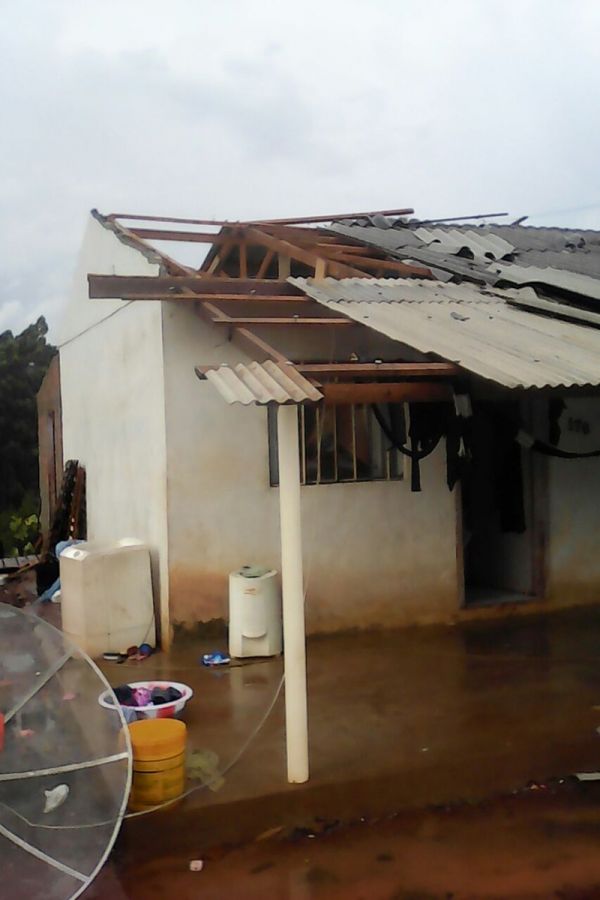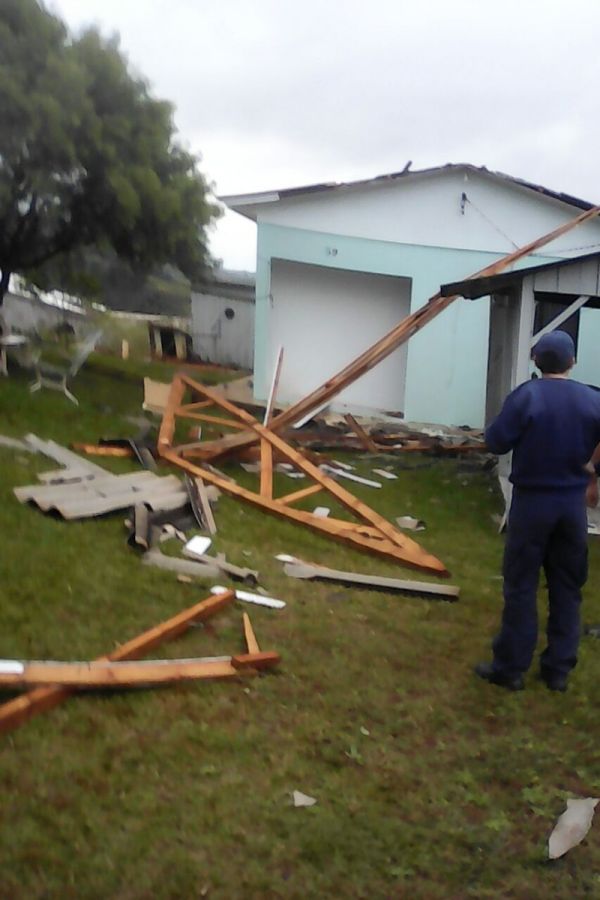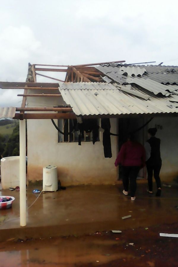 de 40 residências tiveram danos parciais na cobertura e duas apresentaram danos de grande monta.
