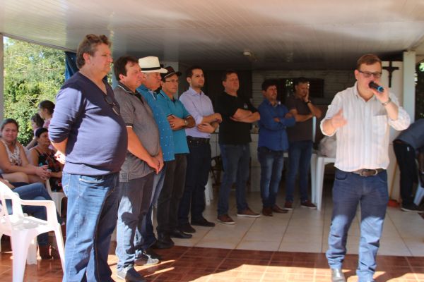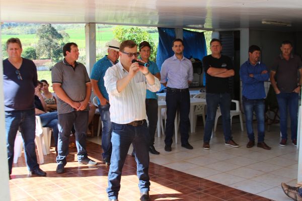 agricultor Ilgo Biandaro na Linha Canguçu diante de mais de 140 pessoas, dentre elas o prefeito