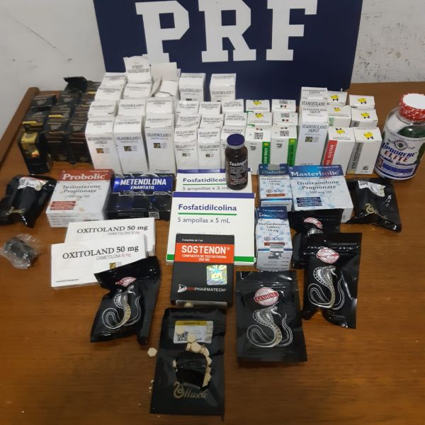 no coletivo uma embalagem que continha diversos frascos de anabolizante e outra com eletrônicos