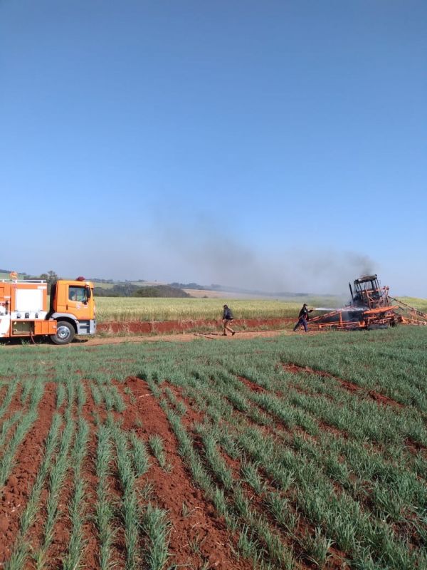 Na manhã de hoje, 22, ocorreu incêndio em um trator com pulverizador em uma propriedade rural na comunidade de Pinhal da Várzea, interior de Salto do Lontra. Assim que o fogo começou, o maquinário foi retirado até à estrada, para evitar que as chamas atingissem a lavoura de trigo. O trator ficou destruído.