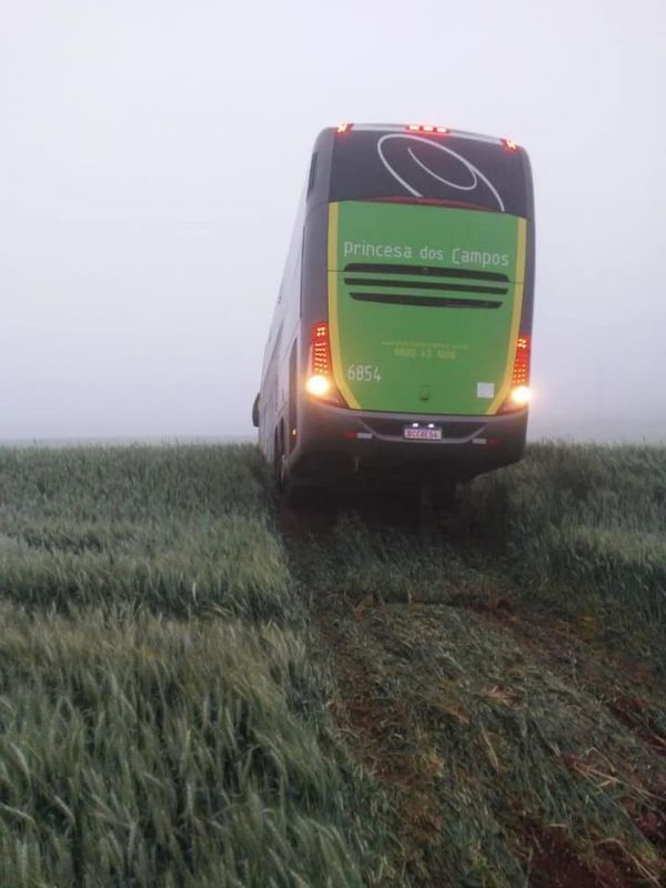 ônibus da empresa Princesa do Campos, na rodovia Cândido Rizzotto PR 471, próximo à comunidade Ouro
