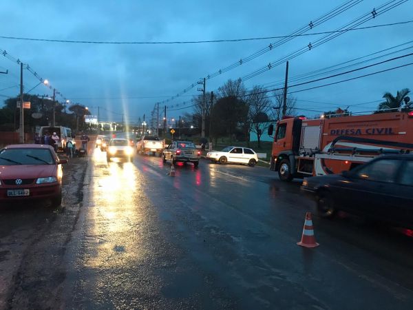 moto sofreu fratura exposta em uma das pernas e foi encaminhada ao Pronto Atendimento Municipal e