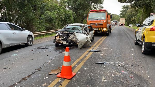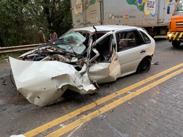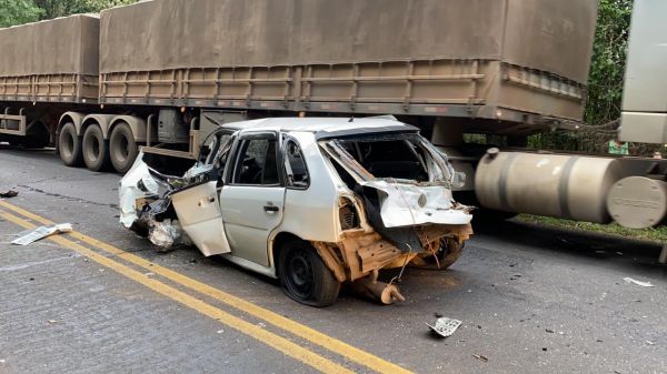 Francisco Beltrão. Se envolveram na colisão um Gol com placas de Pato Branco e duas carretas, uma