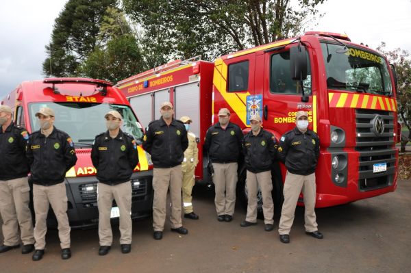ABTR-auto bomba tanque resgate, o qual permanecerá em Pato Branco, e 2 ambulâncias Fiat/Ducato,