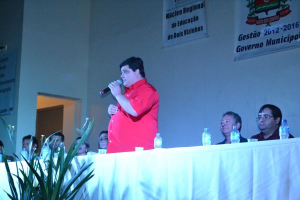 O prefeito Maurício Baú destacou o fato do município receber os Jogos Escolares Bom de Bola. Vamos ser hospitaleiros como sempre fomos. Desejo sorte para todos os competidores e queremos que os jogos sejam disputados dentro das quatro linhas, com disputas na bola e que todos saiam daqui amigos, disse. Ele ainda declarou aberta a fase regional e, depois do anúncio, um show de fogos e papéis marcou a abertura da competição.