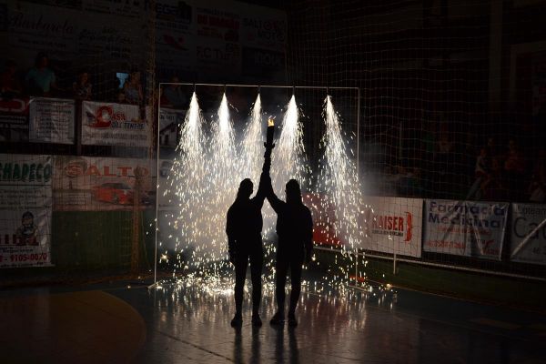 Após as falas das autoridades, as atletas gêmeas Eduarda e Vanda Girotto, do vôlei de praia da Escola Estadual Jorge de Lima de Salto do Lontra, que foram campeãs dos Jogos Escolares e da Juventude conduziram a tocha olímpica, em mais um show pirotécnico que arrancou muitos suspiros da platéia presente. Por fim, o atleta do Colégio Estadual Irmã Maria Margarida, Rafael Nazário fez o juramento dos atletas, que foi seguido da confraternização entre os representantes das dez escolas da região.