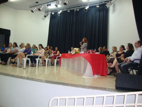 Foto 1: Na foto a Coordenadora da Atenção Básica de Salto do Lontra, Josi Mara Dallo durante seu discurso dirigido especialmente as novas Agentes Comunitárias de Saúde. Na oportunidade ela representou o Secretário Municipal de Saúde, Vanderlei Baldessar.