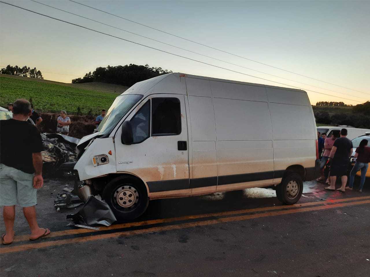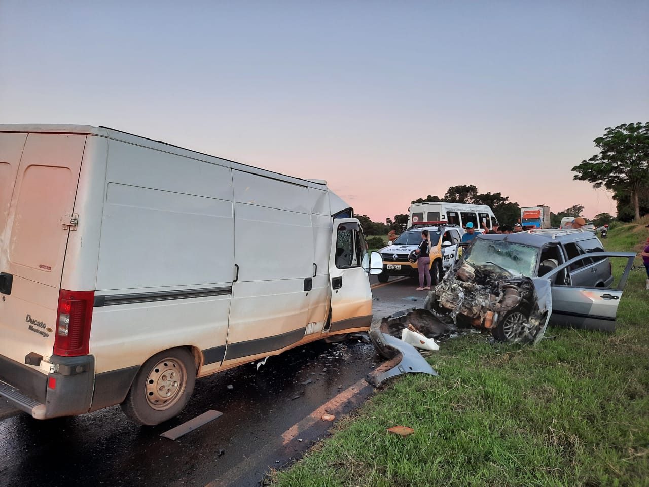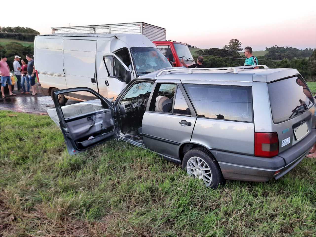 A Polícia Rodoviária Estadual registrou um grave acidente no final da tarde desta sexta-feira (19) na PR-592, próximo ao perímetro urbano da cidade de Nova Prata do Iguaçu. A colisão envolveu uma van Fiat Ducato, um Uno Mille e um Tempra SW.