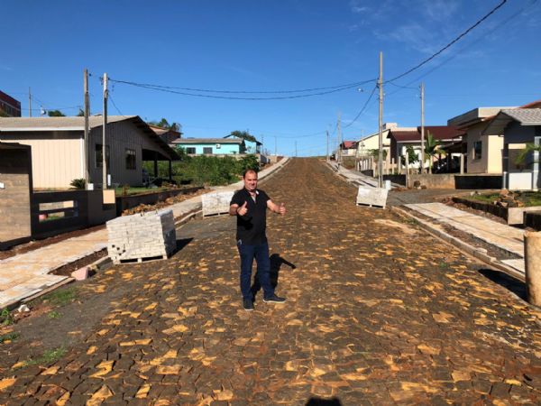 Nova Esperança do Sudoeste: obras de calçamento e calçadas